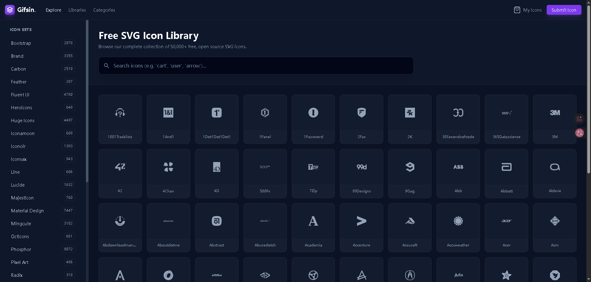 Gifsin: 50,000+ free SVG icons & UI elements for designers and developers. Fast search and one-click copy of component code.